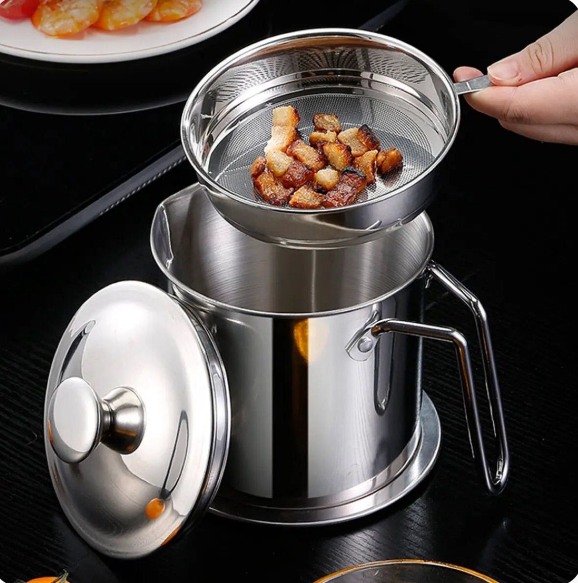 Keep your cooking oil clean and reusable with this 1.4-liter Kitchen Oil Filter Pot. Made from high-quality, durable materials, it efficiently filters out food particles and impurities, helping you save money and reduce waste. Its compact design fits easily in your kitchen, while the leak-proof lid and convenient handle make pouring filtered oil effortless. Perfect for frying oils, ghee, and other cooking oils, this pot ensures healthier and tastier meals every time.